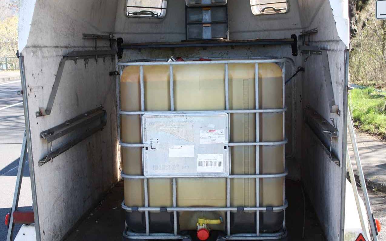 Illegaler Heizöltransport mit einem Pferdeanhänger. Das meldet die Polizei aus Hagen Boele. Gestern Mittag hatten Beamte einen Transporter mit Pferdeanhänger angehalten, der einen IBC-Tank geladen hatte. Der war gefüllt mit rund 1000 Litern Heizöl. Der Fahrer und mögliche Mitwirkende müssen sich auf ein Bußgeld in fünfstelliger Höhe einstellen. Denn hier kommen gleich mehrere Verstöße zusammen. Weder das Behältnis noch der Anhänger sind für Gefahrgut-Transporte zugelassen und die Ladung war komplett ungesichert.