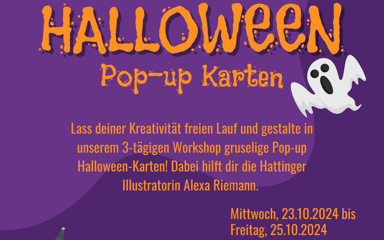 Selber Pop-Up-Karten für Halloween basteln - das bietet die Stadtbibliothek Hattingen im Rahmen des Kulturrucksacks in der zweiten Herbstferienwoche an. Von Mittwoch, 23. bis Freitag, 25. Oktober können Kinder und Jugendliche zwischen 10 und 14 Jahren unter Anleitung der Hattinger Illustratorin Alexa Riemann eigene 3D-Karten basteln. Dabei stehen herbstliche Halloween-Motive im Vordergrund. Die Teilnahme ist kostenlos, die Stadtbücherei (Reschop Carré 1, Hattingen) bittet aber darum, sich anzumelden. Das geht per Telefon (02324/20 43 55 5) oder per E-Mail (bibliothek@hattingen.de).