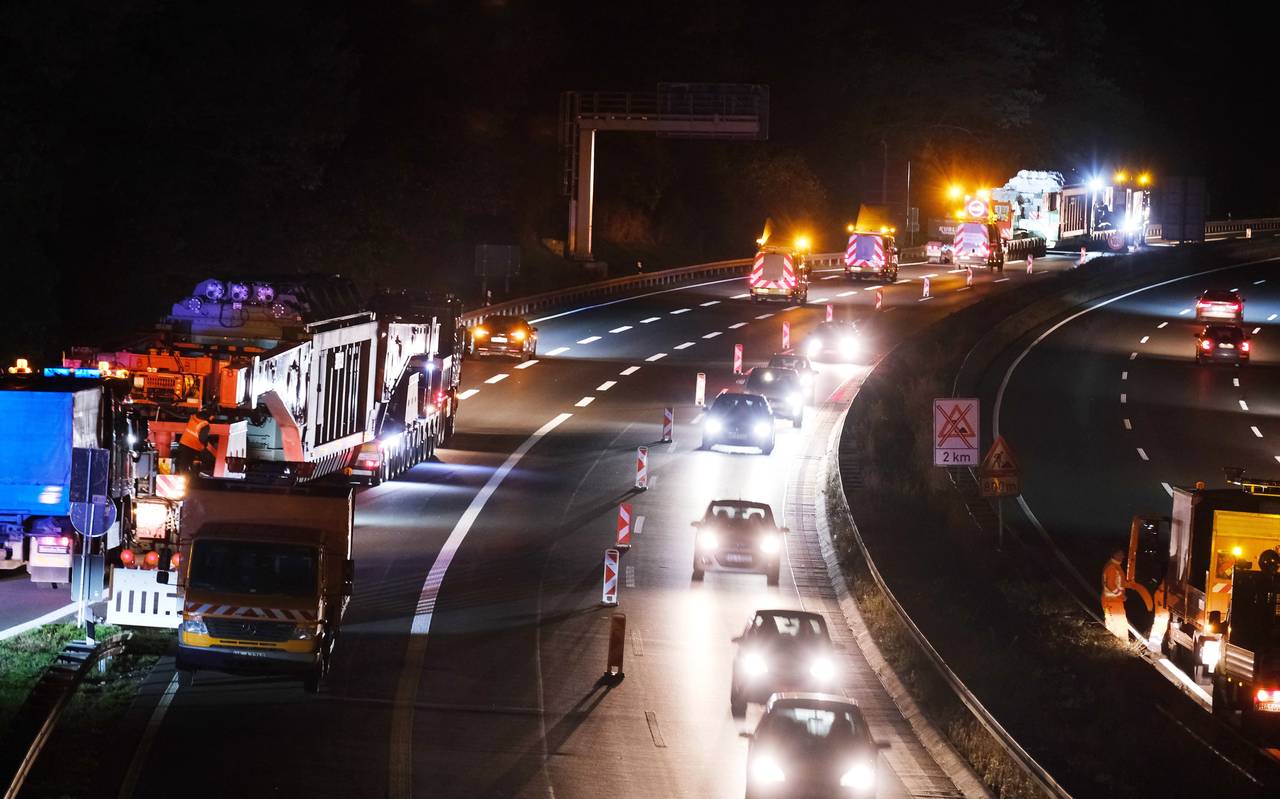 Eine Herausforderung ist dann die Querung der A45. Die Transporte fahren in Schwerte-Ergste in falscher Richtung auf die Autobahn, um sie an der anderen Seite der Auffahrt wieder zu verlassen. Dieses Manöver ist nötig, weil die Transporte zu schwer für die Brücke sind.