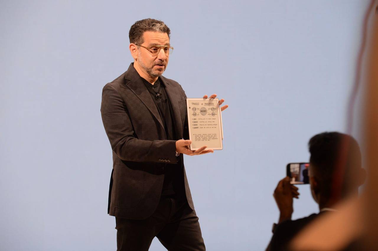 Amazons Gerätechef Panos Panay enthüllt den überarbeiteten Kindle Scribe.