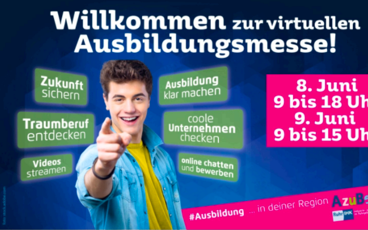 Schülerinnen und Schüler aus dem Ennepe-Ruhr-Kreis können sich ab sofort für die Ausbildungsmesse "AzuBeYou" anmelden. Bei der virtuellen Messe der Industrie- und Handelskammern im Ruhrgebiet präsentieren sich Anfang Juni rund 80 Unternehmen mit ihren Ausbildungsangeboten.