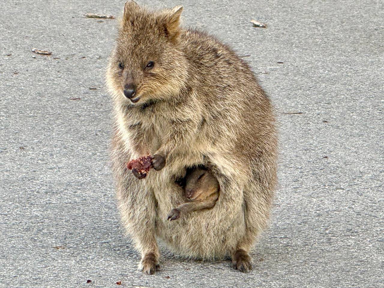 Sei's drum. Denn eins sind Quokkas immer: extrem niedlich, besonders in diesen Wochen, in denen sie gerade ihre Jungen, «Joeys» genannt, zur Welt gebracht haben. Die lugen immer wieder vorwitzig aus dem Beutel der Mutter hervor, manche wagen sich auch schon mal vorsichtig tapsend in die Welt hinaus, allerdings immer in sicherer Nähe zur Mama.