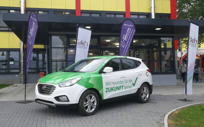 Die angehenden KfZ-Mechatroniker am Berufskolleg Hattingen können ab sofort an einem besonderen Übungsobjekt schrauben. Das Autohaus Hyundai Smolczyk hat dem Berufskolleg ein Brennstoffzellenauto der neuesten Generation spendiert – im Wert von 70.000 Euro.