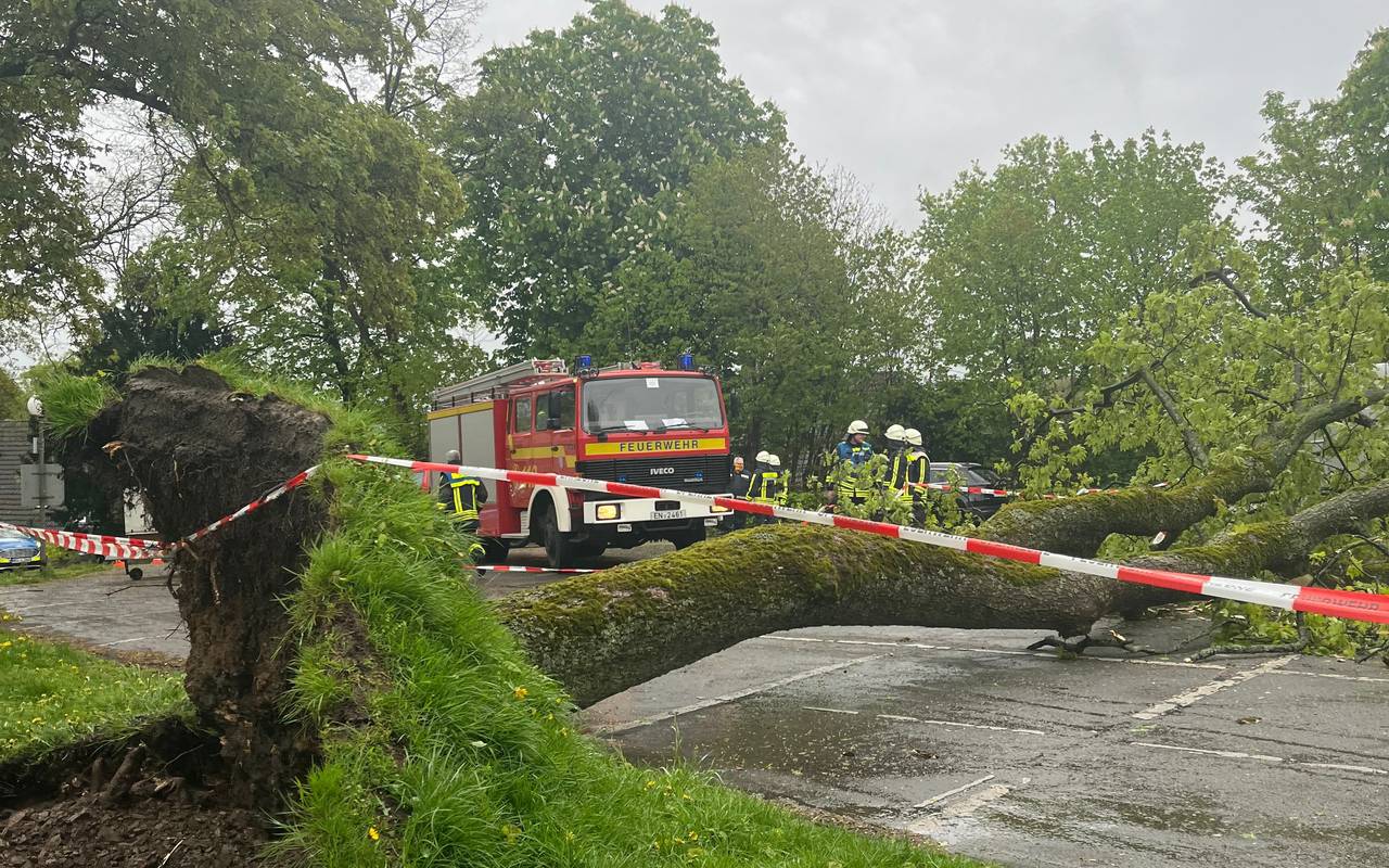 Der Sturm hat die Feuerwehr hier bei uns gut beschäftigt. Insgesamt gab es bis in die Nacht rund 20 Einsätze, außerdem einen Verletzten. In Hattingen war ein Baum auf einen Mann gestürzt. Der Mann wurde in seinem Garten von einem sechs Meter hohen Baum getroffen. Als die Feuerwehr kam, lag er unter dem Baum, war aber nicht eingeklemmt. Er war am Oberkörper und am Kopf verletzt - deswegen hat die Feuerwehr den Baum angehoben und beiseite geschoben. Der Mann liegt jetzt im Krankenhaus. Auch in Ennepetal und Wetter sind am Nachmittag und am Abend mehrere Bäume umgestürzt. Viele Straßen waren kurzzeitig gesperrt, einige Gehwege waren blockiert.