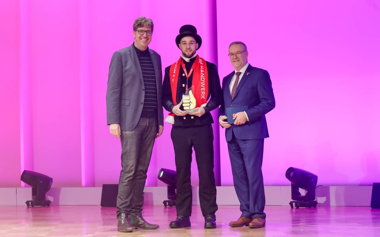 Der Handwerker-Nachwuchs bei uns ist gut aufgestellt. Drei Bundesieger im Handwerk kommen hier aus der Region. Erster Bundessieger wurde der Schornsteinfeger Robin Mauß aus Wuppertal - ausgebildet in Ennepetal. Über den zweiten Platz konnten sich der Stuckateur Maximilian Buerger aus Wetter und die Technische Modellbauerin Wiebke Vollmer aus Bochum freuen. Sie kamen bei der Deutschen Meisterschaft im Handwerk aufs Treppchen und wurden jetzt ausgezeichnet. Vorher mussten sie sich in NRW gegen ihre Berufskonkurrenz durchsetzen. Um am Wettbewerb teilzunehmen, müssen sie ihre Abschlussprüfung mindestens mit der Note "gut" bestanden haben und dürfen nicht älter als 27 Jahre sein.