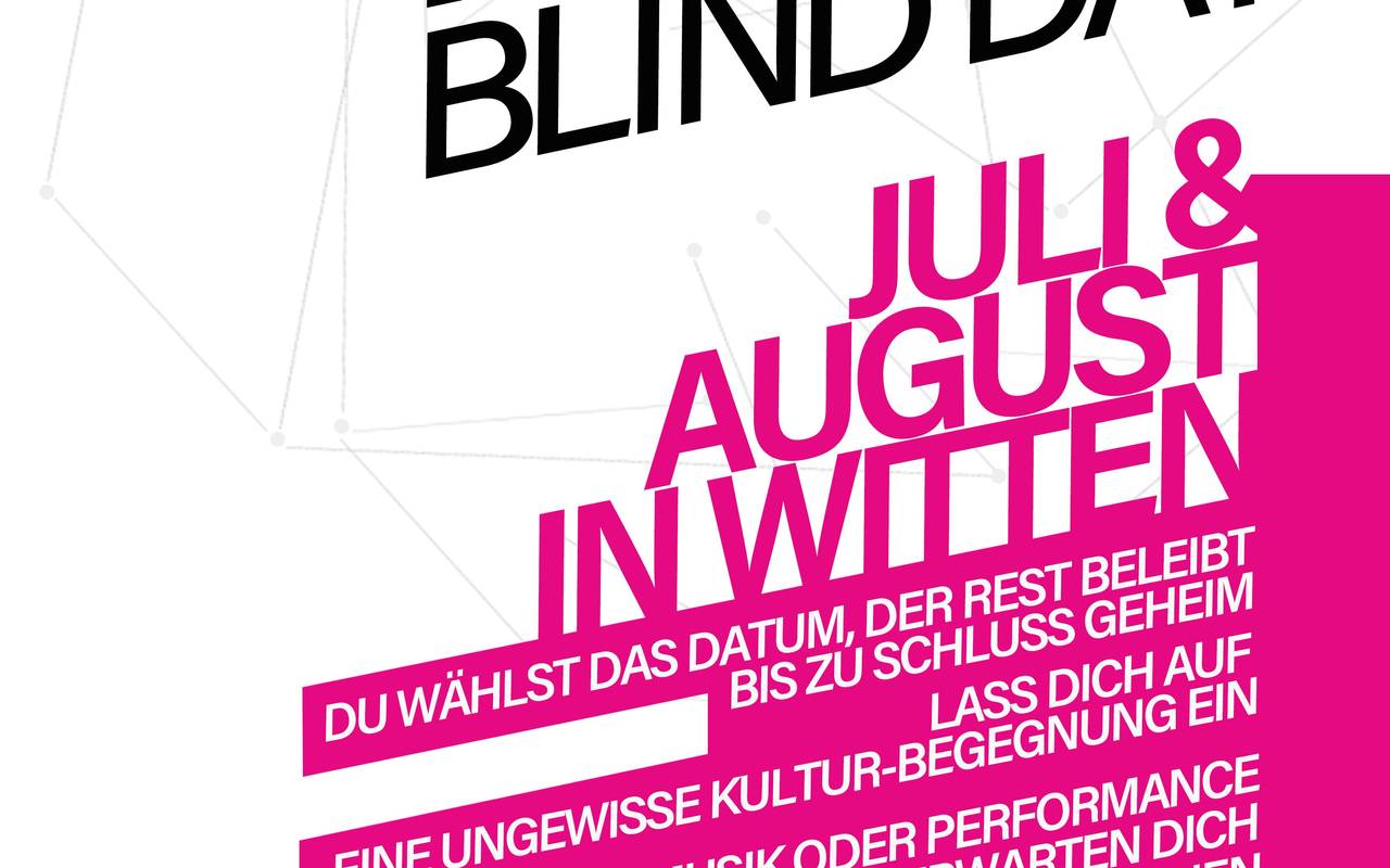 Witten: Das ungewöhnliche Angebot haben die WERK°STADT und das Kulturforum Witten gemeinsam entwickelt. Die Besucher kaufen vorab für fünf Euro ein Ticket für einen bestimmten Termin und müssen sich dann überraschen lassen. Der genaue Ort und das Programm bleiben bis zuletzt unbekannt. Der Veranstaltungsort wird den Gästen am Tag des Events per Mail mitgeteilt. Was sie erwartet, erfahren sie erst vor Ort - von Theater über Performance bis zu Musik ist alles möglich. Das Projekt läuft vom 9. Juli bis zum 22. August. Zum Kartenkauf geht es hier!