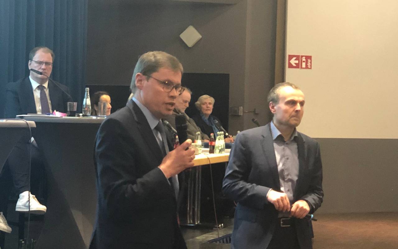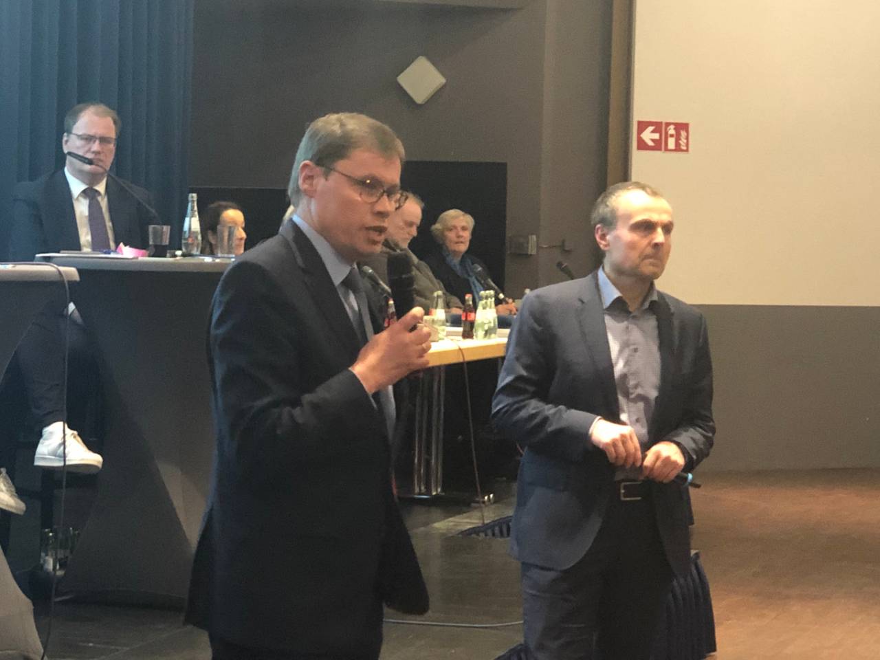 Landrat Olaf Schade und Bürgermeisterin Imke Heymann sprechen Grußworte. Heymann hatte sich "niedrigere Belastungen erhofft, aber aus der Befürchtung wurde Gewissheit". Wichtig sei, dass man über gesicherte Erkenntnisse spreche, nicht über Spekulationen.