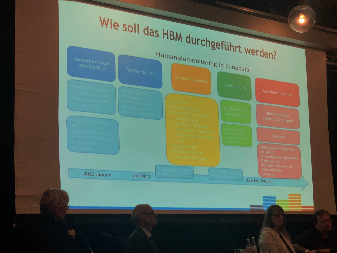 Im März sollen die Vorbereitungen für das HBM beginnen, im Mai/Juni sollen die Blutentnahmen bei den Bewohnern beginnen, die vorher von LANUV und Kreis angeschrieben werden. Ergebnisse dazu erwarte man im dritten Quartal 2020.