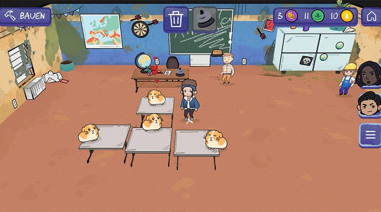 Wer sich das kostenlose Spiel für iOS und Android herunterlädt, muss sich zunächst einen Charakter erstellen. In der Schule beginnt dann eine Art cozy Rollenspiel: Von Lehrer Frank Stimpel bekommt man Aufgaben, die zu einigem Chaos führen - etwa Müll sammeln und entsorgen.