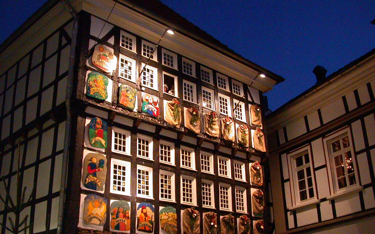 - Ab dem 1. Dezember wird das alte Hattinger Rathaus zu einem überdimensionalen Adventskalender. Da öffnet Frau Holle täglich um 17 Uhr ein Fenster. Nach weihnachtlichen Liedern und Geschichten lässt Frau Holle aus ihrem Kissen Goldtaler und andere Süßigkeiten schneien.