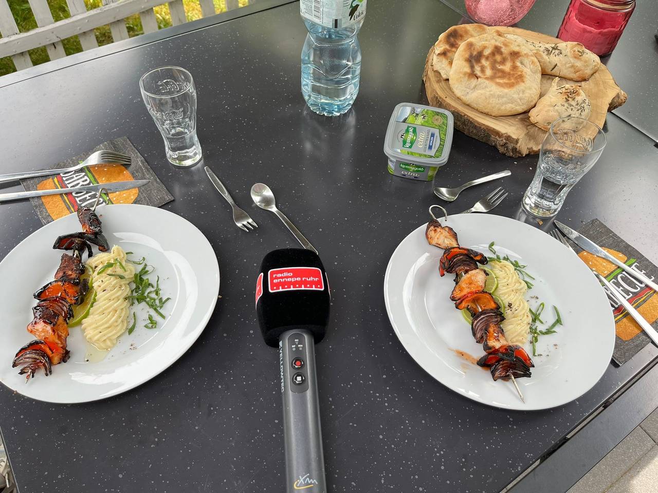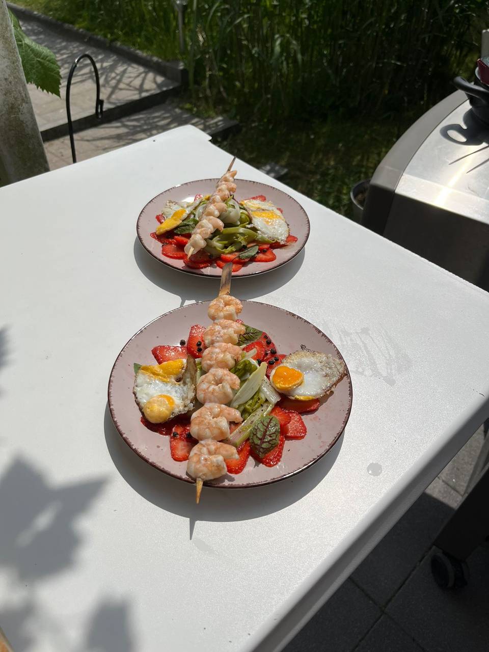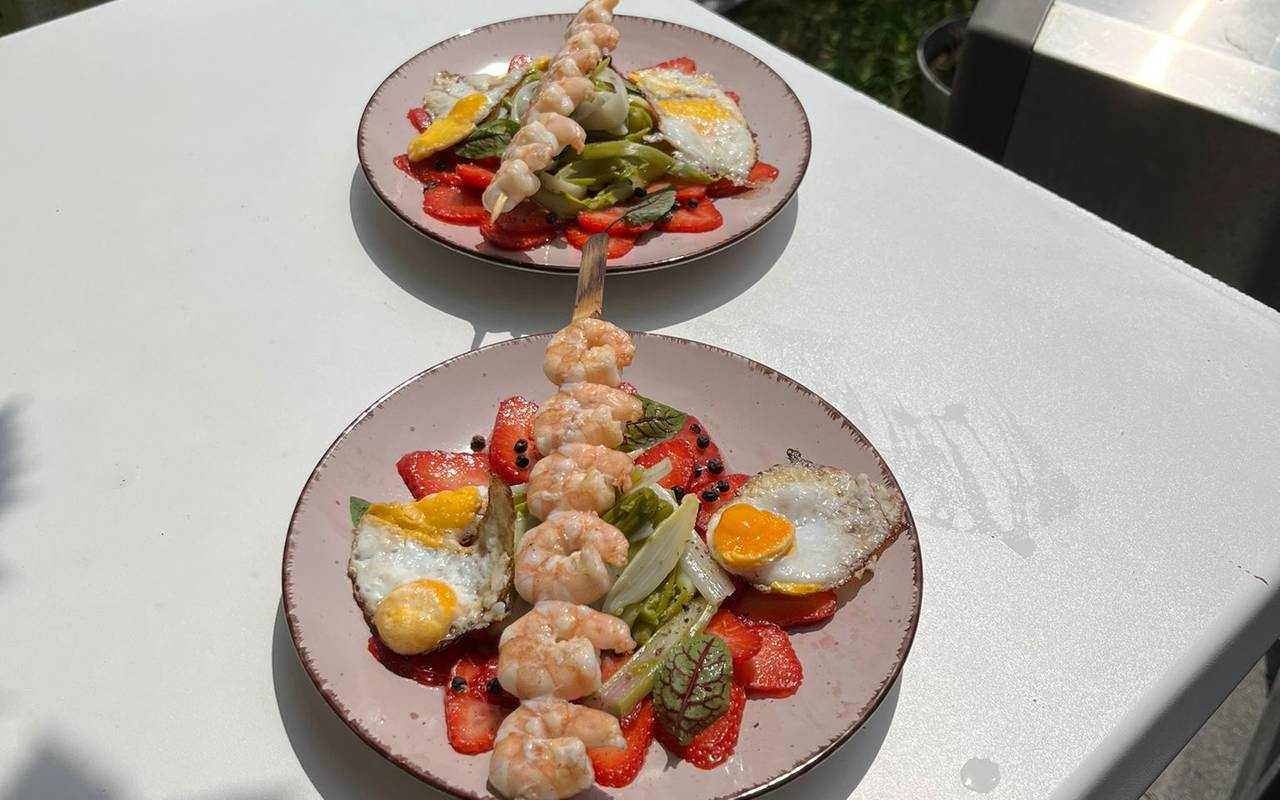 Kollege Oliver Behrendt hat mal den Test gemacht und sich ein 3 Gänge Menü zaubern lassen. Die Vorspeise: Erdbeer-Spargel Carpaccio mit Wachtel-Eiern und Garnelenspieß. Hauptgang: Hähnchenspieß mit Paprika und Zwiebel und Kartoffelbrei mit Trüffelöl. Nachspeise: Gegrillter Pfirsich mit selbstgemachtem Erdbeereis und griechischem Joghurt,