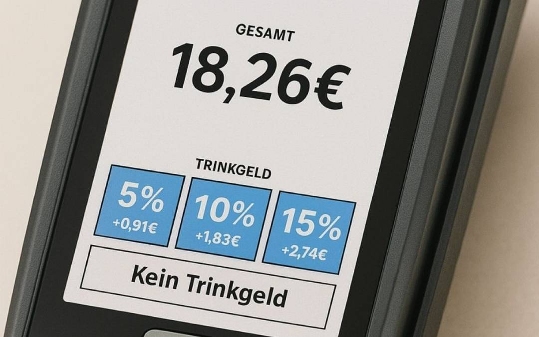 Beim Bezahlen mit Karte schlagen die Geräte verschiedene Trinkgeldbeträge vor - zum Beispiel fünf, zehn oder fünfzehn Prozent.