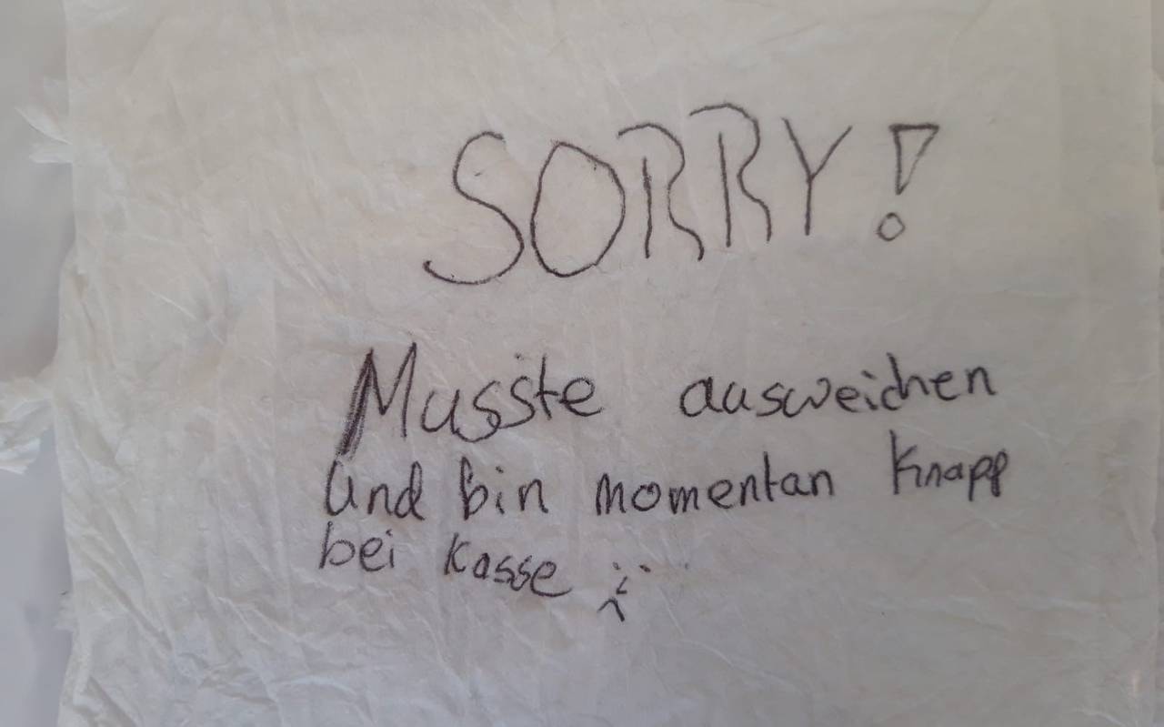 Dabei hat der Verursacher eine zerknitterte Serviette mit Botschaft an der Windschutzscheibe hinterlassen. Allerdings war da keine Telefonnummer oder Ähnliches drauf, sondern ein kurzes "Sorry". Und ein Hinweis darauf, dass er ausweichen musste und knapp bei Kasse sei. Die Polizei konnte Spuren sichern und sucht nach Zeugen. Das Auto hatte am Samstagabend in der Bülowstraße geparkt. In solchen Fällen reicht übrigens auch ein Zettel mit Telefonnummer nicht aus. Falls der Geschädigte nicht auftaucht, muss der Verursacher seine Kontaktdaten bei der Polizei hinterlassen.