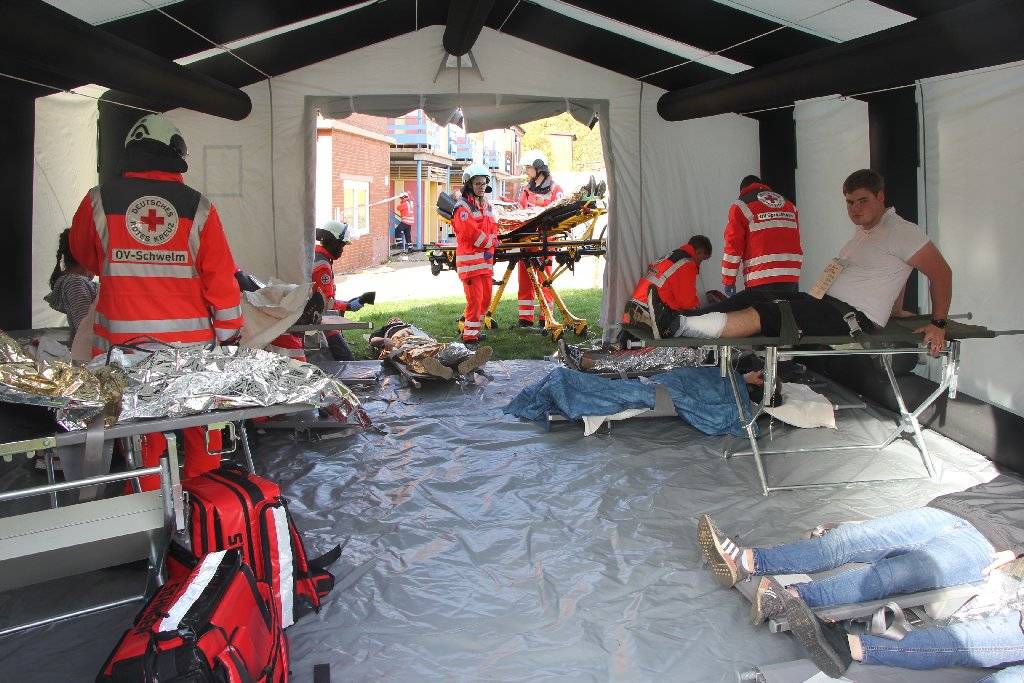 Solche Übungen sind zweimal im Jahr von der Bezirksregierung vorgeschrieben. Geübt wird dabei unter anderem, wie die Verletzten erstversorgt und auf die umliegenden Krankenhäuser verteilt werden können. Dazu wurden in dem Freibad zum Beispiel Zelte aufgebaut, Krankenwagen rollten an und Rettungshunde waren im Einsatz. Das DRK ist zufrieden damit, wie die Übung verlaufen ist. Die 30 Verletzten wurden unter anderem von der Jugendfeuerwehr und der DLRG Wetter gespielt. Dazu wurden ihnen zum Beispiel Brandwunden aufgeschminkt, damit alles so realistisch wie möglich aussieht.