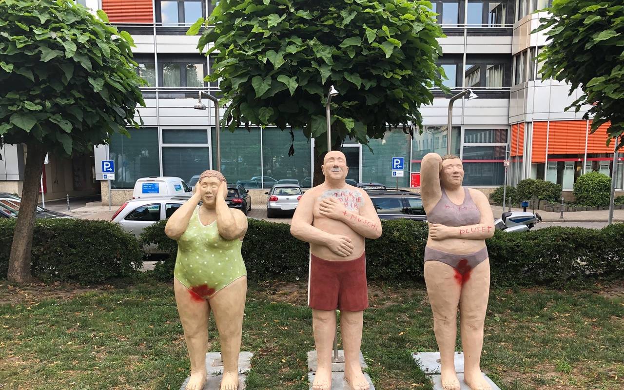 Witten: Seit zwei Wochen sind die Betonfiguren der Wittener Künstlerin Christel Lechner in Rheinberg, Moers und Kamp-Lintfort ausgestellt. Sie gehören zu der Reihe "Alltagsmenschen" – drei von ihnen sind in Moers Vandalen zum Opfer gefallen. Unbekannte hatten die Figuren mit roter Farbe beschmiert, laut Polizei zwischen Montag- und Dienstagabend. Seit Beginn der Ausstellung sind schon mehrere "Alltagsmenschen" beschädigt worden. In Moers soll ein junger Mann eine Figur mit Absicht umgestürzt haben, fünf weitere wurden mutmaßlich von einer Gruppe Jugendlicher zerstört.