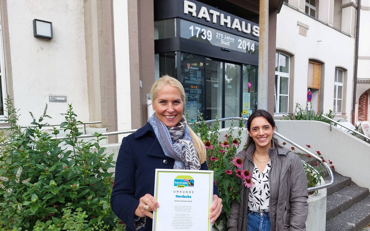 Die Stadt Herdecke hat für zwei weitere Jahre das Fairtrade-Siegel bekommen. Der gemeinnützige Verein "TransFair" hatte die Bescheinigung überreicht. Darin heißt es, Herdecke trage dazu bei, dass benachteiligten Produzentengruppen zu einem verbesserten Einkommen geholfen wird. Von der Stadt heißt es, dass auch in Zukunft das Ziel sei, die Menschen für den Konsum fairer Produkte und deren Herstellung zu sensibilisieren. Voraussetzungen für den Titel "Fairtrade-Stadt" ist unter anderem eine Mindestanzahl fair gehandelter Produkte in Geschäften und Unternehmen in der Stadt.