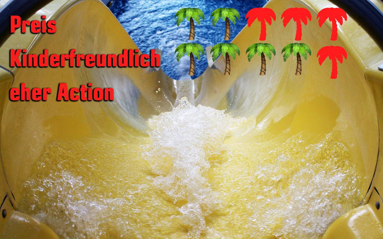 Rutschen, Rutschen und nochmal Rutschen – im Aquamagis in Plettenberg kann man sich so richtig austoben, wenn man auf Wasserrutschen steht. Es gibt eine Rutsche, bei der man 10 Meter in die Tiefe fällt. Es gibt eine, auf der man Rennen gegen zwei andere fahren kann und es gibt eine Rutsche, in der man im Stehen runter flitzt. Ganz billig ist der Spaß nicht. Erwachsene zahlen für ein Tagesticket 19,50 Euro, Kinder kommen für 16,50 Euro rein. Die windbetriebene Wasserrutsche kostet nochmal 2 Euro extra pro Durchgang am Wochenende und an Feiertagen. Für die ganz Kleinen sind die meisten Rutschen aber noch nichts. Da gibt es günstigere Schwimmbäder.