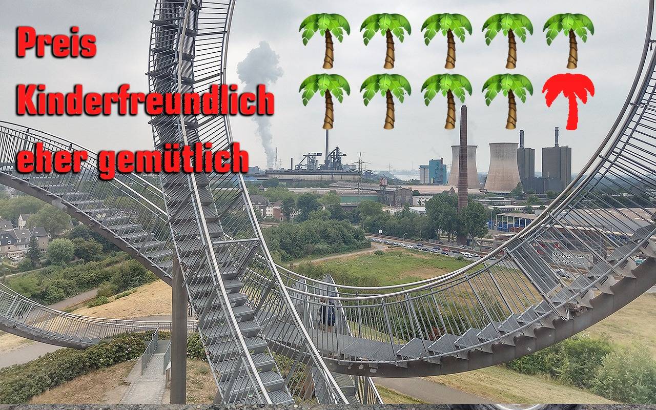 Hier in NRW gibt’s auch jede Menge Radwege – in Duisburg gibt es einen ganz besonderen: Hoch zu „Tiger and Turtle“. Das ist ein Kunstprojekt auf einer Halde. Los geht es an der Sechs Seen-Platte in Duisburg. Auf der Tour ist dann alles dabei: Wald, Felder, ein Ausblick auf mehrere Seen. Dann fährt man kurz durch eine alte Zechensiedlung und dann die Halde hoch zu „Tiger and Turtle“. Eine Skulptur oben auf der Halde, sieht aus wie eine Achterbahn. Nur, dass man darauf spazieren gehen kann und hier ein Stückchen Ruhrpott von oben sieht. Die Tour ist allerdings etwas schlecht ausgeschildert. Deswegen lohnt sich schon eine Route festzulegen. Die gibt es hier. In der Regel braucht man rund vier Stunden. Das Ganze ist kostenlos.