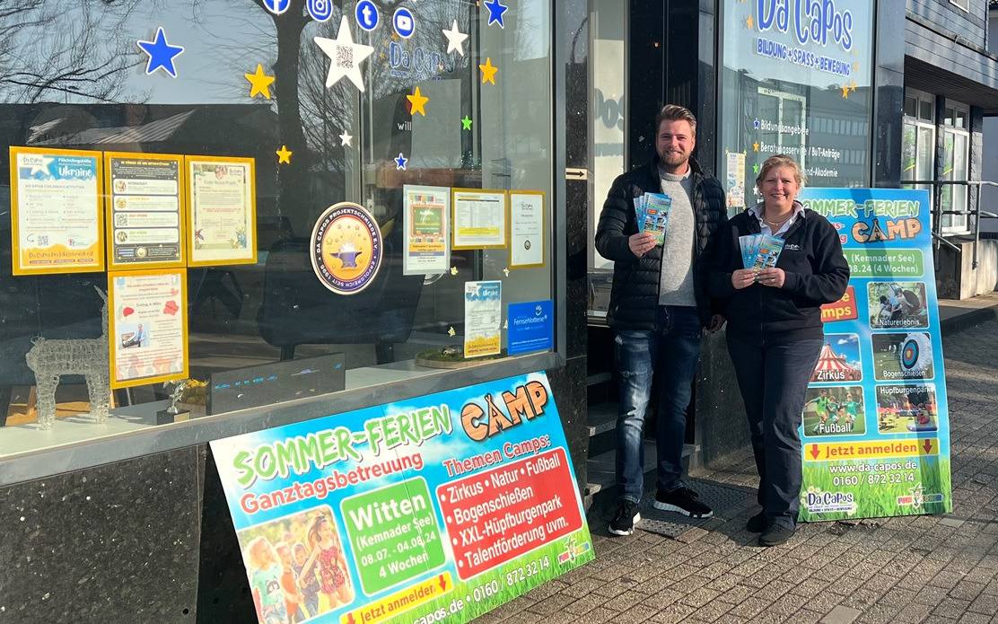 Von Anfang Juli bis August gibt es in Witten eine Ferienfreizeit am Kemnader Stausee hinter dem Freizeitbad Heveney. Der Verein "Da Capos" aus Sprockhövel organisiert das. Ganztägig oder auch ganze Wochen können Kinder und Jugendliche zwischen sechs und 18 Jahren mitmachen, die Anmeldungen laufen bereits. Es gibt zum Beispiel einen Zirkusworkshop, ein Natur- oder Fußball-Camp und auch Übernachtungswochen in traditionellen Tipi-Zelten. Für bedürftige Kinder gibt es Vergünstigungen.