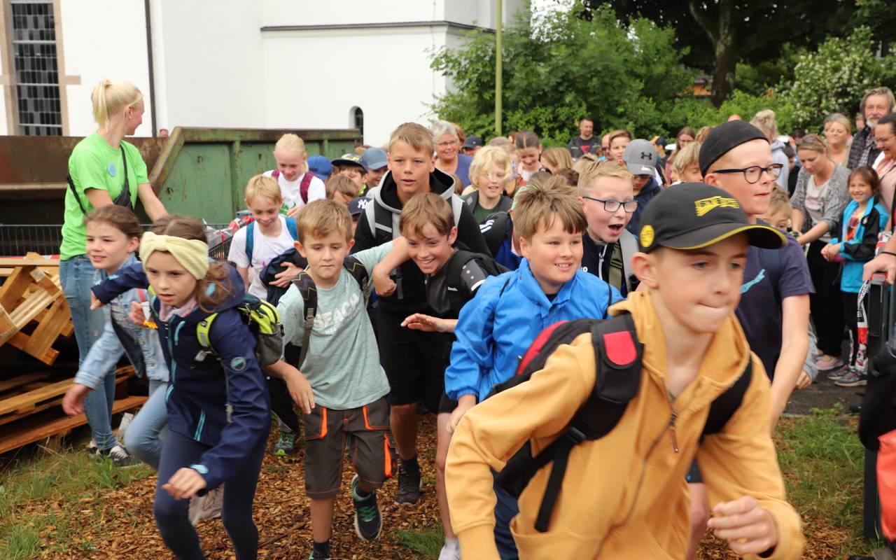 Zum 30. Mal hat der Bauspielplatz des CVJM Rüggeberg in Ennepetal seine Türen geöffnet. Heute (23.06.) morgen um 9:00 Uhr warteten schon fast 200 (191) junge Bauarbeiterinnen und Bauarbeiter auf den Start. Das diesjährige Motto der Aktion ist "Regenwald", passend dazu soll unter anderem eine große Inka-Pyramide gebaut werden. Betreut werden die Kinder von freiwilligen Helferinnen und Helfern, von denen viele schon selbst als Kind in den Sommerferien auf dem Platz gespielt haben.