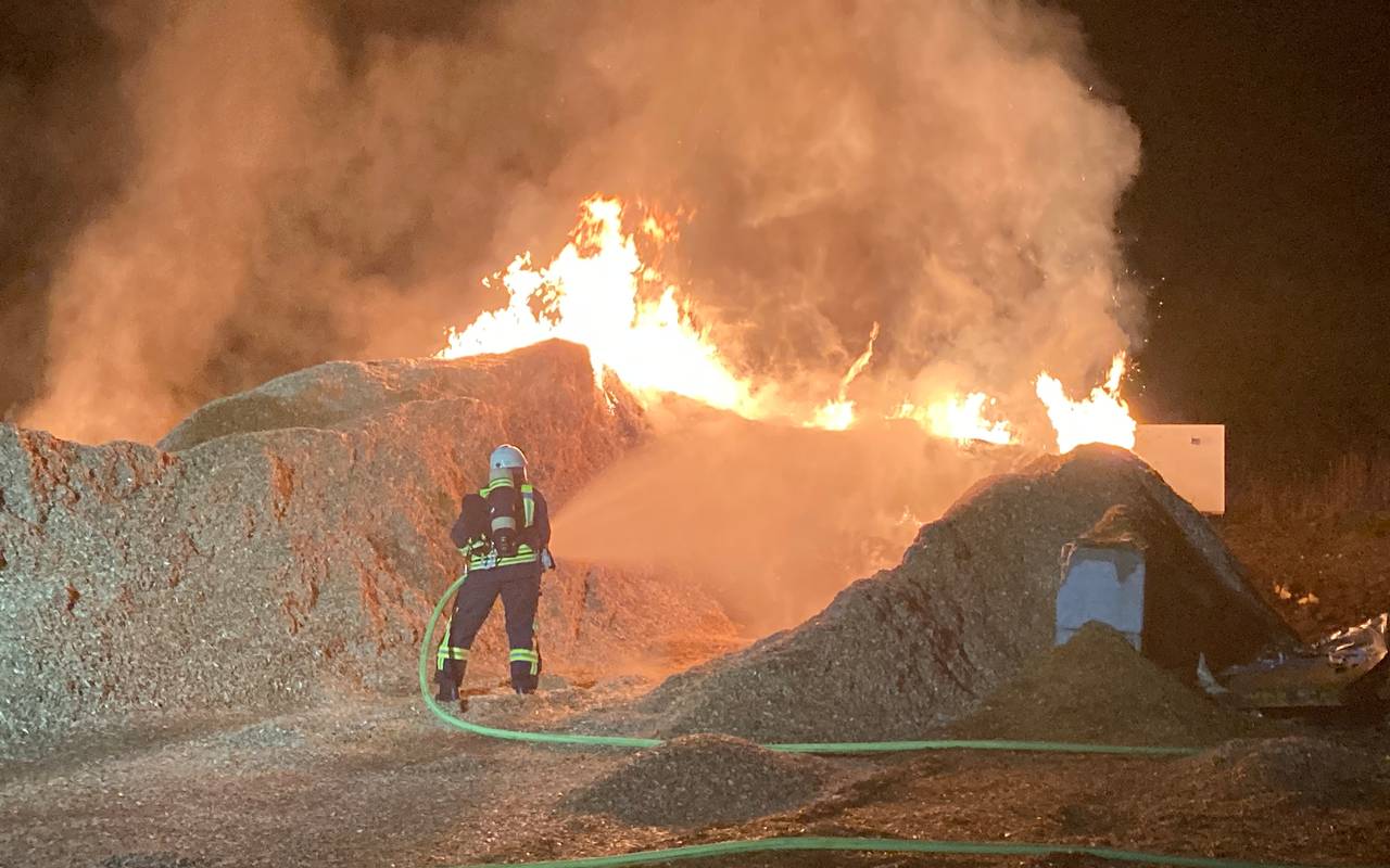 An der Gemüsescheune in Hattingen ist das Feuer in gelagerten Holzhackschnitzeln ausgebrochen. Mehrere Hundert Kubikmeter davon standen in Flammen. 60 Mitglieder der Hattinger Feuerwehr haben verhindert, dass das Gebäude der Gemüsescheune selbst auch in Brand gerät. Der Sachschaden ist laut Polizei hoch und liegt bei 30.000 Euro. Verletzt wurde niemand. Noch immer ist die Feuerwehr im Einsatz. Die Brandursache ist unklar.