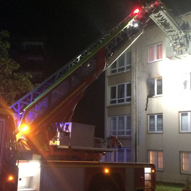 Zwei Angriffstrupps der Berufsfeuerwehr gingen in die brennende Wohnung vor, um das Feuer zu löschen. Von einer Drehleiter aus schlug die Feuerwehr zwei Fenster ein, um den dichten Brandrauch aus dem vorderen Teil der Wohnung abziehen zu lassen.