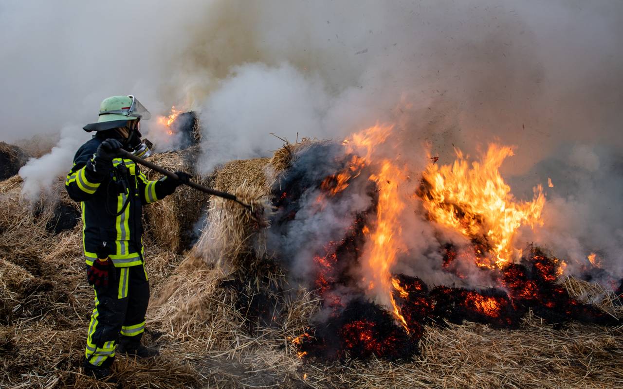 Hattingen: Auf einem Bauernhof in Bochum-Stiepel an der Königsallee brannten gestern Mittag mehrere hundert Strohballen. Der Rauch zog in Richtung Kemnader See. Die Feuerwehr in Bochum forderte die Unterstützung der Hattinger Kollegen an. Viele Stunden dauerte der aufwändige Einsatz da schon, dann kamen die Hattinger dazu, um ihre Bochumer Kollegen abzulösen. Der Einsatz dauerte bis heute Morgen um 1.00 Uhr. Wieso das Feuer ausbrach, ist noch unklar. Der betroffene Landwirt geht in der WAZ Bochum von Brandstiftung aus.