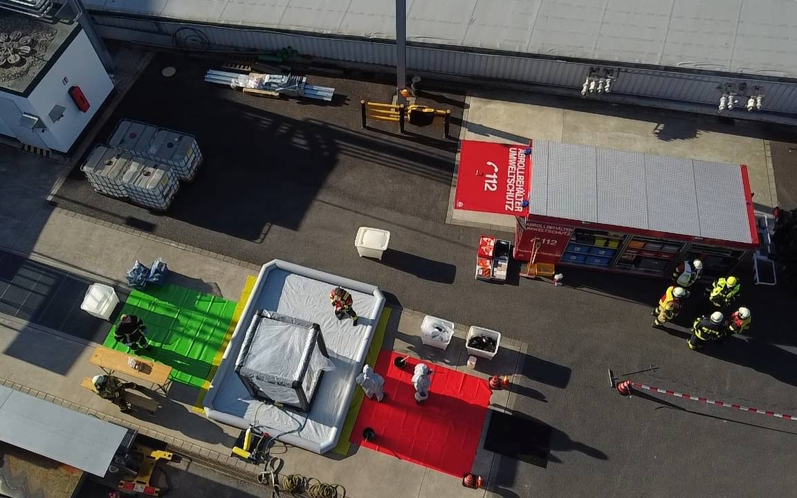 In Herdecke ist heute morgen in der Produktionshalle eines Industriebetriebs brennbare Flüssigkeit ausgetreten. Die Betriebsfeuerwehr konnte eine weitere Ausbreitung verhindern und die Halle rechtzeitig räumen. Die Feuerwehr Herdecke übernahm den Einsatz und konnte den Gefahrstoff mit zwei Atemschutztrupps sichern und in spezielle Fässer umfüllen. Diese müssen jetzt entsorgt werden. Wie die Feuerwehr meldet, bestand zu keinem Zeitpunkt eine Gefahr für die Öffentlichkeit oder die Umwelt. Der Einsatz dauerte insgesamt 5 Stunden. 25 Einsatzkräfte der Feuerwehr Herdecke und 8 Fahrzeuge waren im Einsatz.