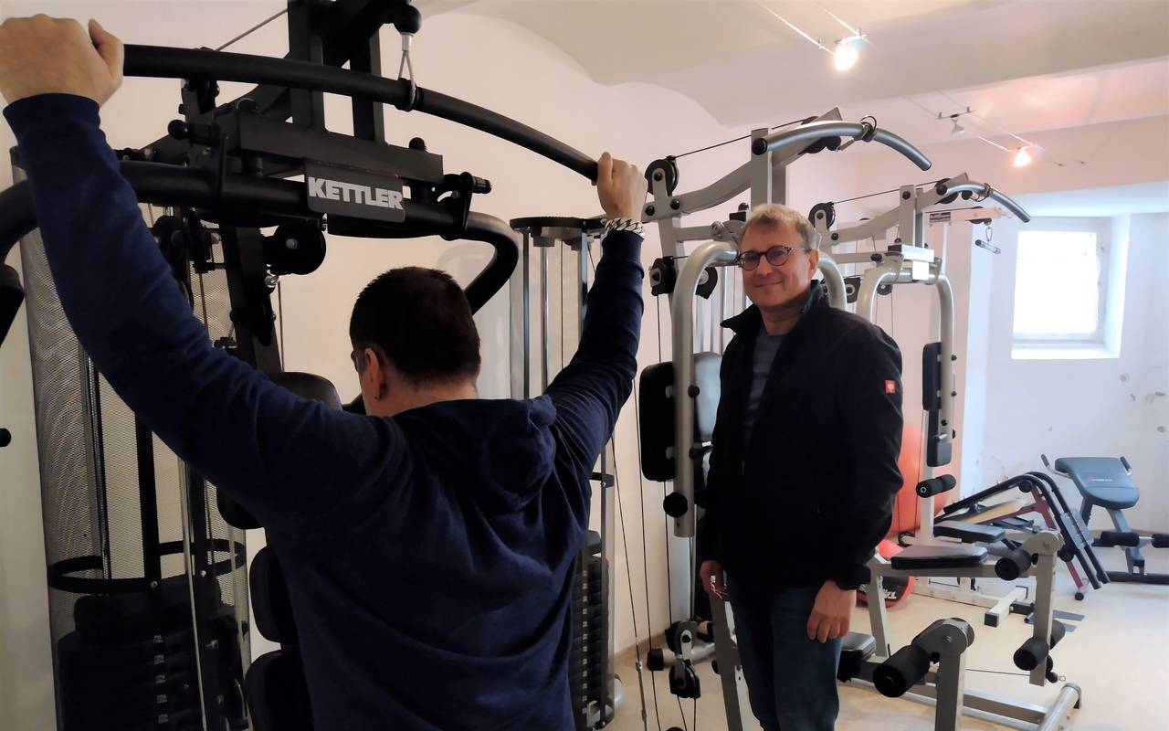 Manche psychisch Kranke haben Angst vor vielen Menschen, z.B. im Fitnessstudio. Denen bietet die Caritas in Hattingen jetzt eine Lösung an - mit einem hauseigenen Fitnessstudio. Dass befindet sich im Untergeschoss des Caritas-Hauses an der Bahnhofstraße. Dort können die Caritas-Berater gemeinsam mit einem Klienten, der unter einer sozialen Phobie leidet, zum Sport in den Keller gehen. Auch wenn das Studio den Charme vergangener Jahrzehnte versprüht, kommt es bei den Klientinnen und Klienten gut an. Auch Menschen aus dem Suchthilfezentrum und Jugendliche aus der Wohngruppe kommen in die Bahnhofstraße, um zu trainieren.
