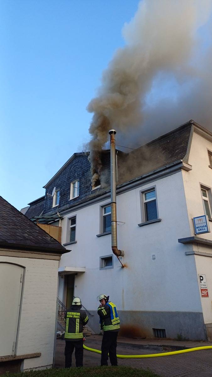 Gegen halb sieben (06:28 Uhr) wurde die Feuerwehr in die Königstraße gerufen. In dem Haus, in dem auch ein Restaurant ist, brannte es in einer Wohnung schon so stark, dass Flammen aus dem Fenster kamen. 8 Bewohner des Hauses konnten sich selbst in Sicherheit bringen, die Frau war aber noch im Haus. Die Einsatzkräfte sind mit Atemschutz hinein, konnten der Frau aber nicht mehr helfen. Rund 40 Einsatzkräfte der Feuerwehr waren zusammen mit dem Rettungsdienst bis 11 Uhr vor Ort. Das Haus ist nicht mehr bewohnbar, die Bewohner sind anderweitig untergekommen. Die Polizei ermittelt jetzt.