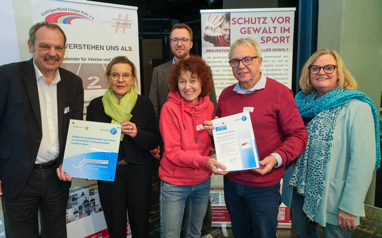 Der Kreissportbund Ennepe-Ruhr ist jetzt Mitglied im Qualitätsbündnis zum Schutz vor Gewalt des Landessportbundes NRW. Das Bündnis hat das Ziel, Gewalt im Sport zu verhindern und Betroffene zu schützen. Wer im Bündnis mitmachen will, muss mehrere Kriterien erfüllen, das tut jetzt auch der Kreissportbund Ennepe Ruhr. Dazu gehört unter anderem, qualifizierte Ansprechpersonen im Verein zu haben, ein Schutzkonzept zu bieten und regelmäßige Schulungen und Sensibilisierungsmaßnahmen anzubieten.