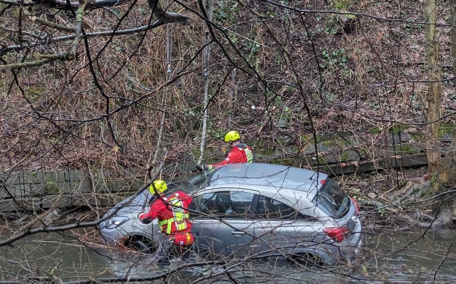 In Gevelsberg ist heute Nachmittag an der Milsper Straße ein Mann mit seinem Auto aus einer Garage direkt in die Ennepe gefahren. Der Wagen rutschte rund 20 Meter die steile Böschung hinab in den Fluss. Das hat die Polizei auf Nachfrage berichtet. Der Fahrer wurde nur leicht verletzt. Er wurde bereits vor ankommen der Feuerwehr von Passanten aus dem Auto befreit. Es seien auch keine Flüssigkeiten aus dem Auto in den Fluss gelaufen, so die Feuerwehr. Zur Sicherheit brachte sie aber Ölsperren auf dem Fluss an. Gegen drei (14:55) Uhr heute Nachmittag war bei der Feuerwehr der Alarm eingegangen. Die Milsper Straße war für rund zwei Stunden komplett gesperrt. Um die Bergung des Wagens kümmerte sich der ADAC.