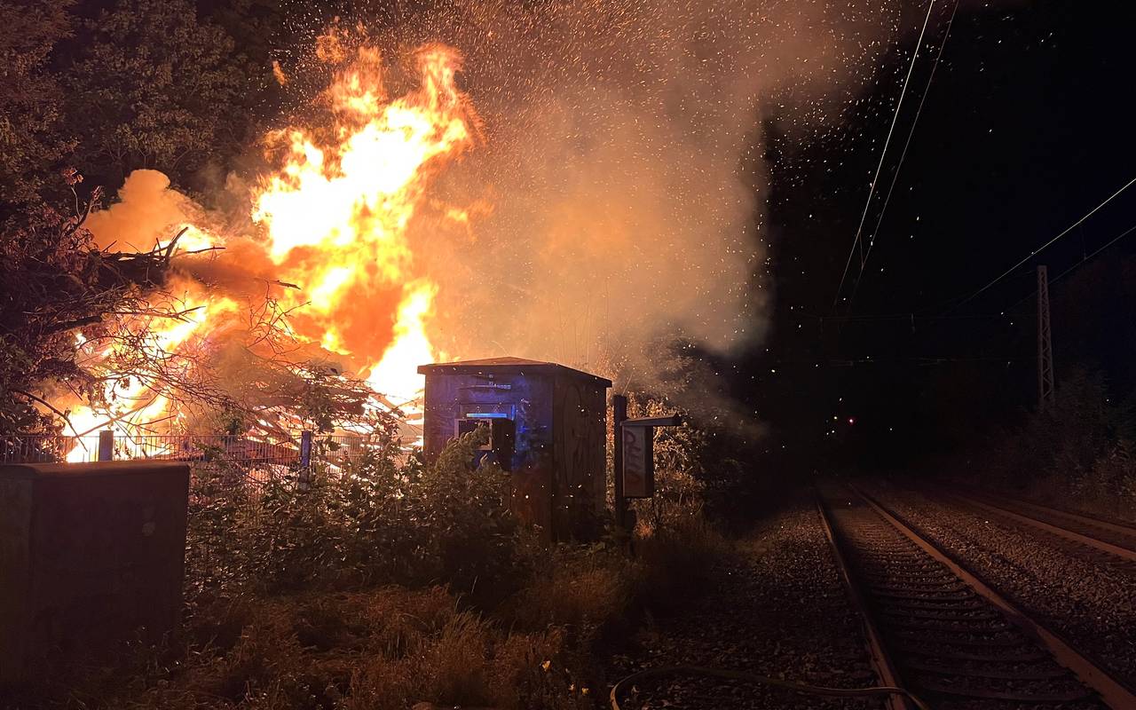 Die Feuerwehr Gevelsberg hat vergangene Nacht einen Großbrand bekämpft. An der Bahnhofstraße brannte ein 250 Kubikmeter großer Holzstapel. Die Hauptwache alarmierte sofort weitere Löschzüge. Die angrenzende Bahnstrecke wurde sofort gesperrt. Die Feuerwehr startete einen massiven Brandangriff. Zur Unterstützung kam auch die Feuerwehr Ennepetal mit einem Teleskoplader. Der zog die Holzstämme auseinander, damit sie besser abgelöscht werden konnten. Kurzzeitig hatte die Leitstelle eine Warnmeldung wegen Geruchsbelästigung herausgegeben. Gegen 7.00 Uhr heute Morgen konnte die Feuerwehr den Einsatz abschließen. Die Polizei ermittelt jetzt die Brandursache.