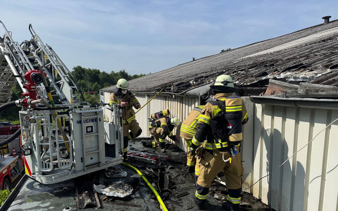Ob im Dach Asbest ist, war zunächst allerdings unklar. Doch mittlerweile hat ein Labor den Verdacht bestätigt, sagt die Feuerwehr. Ein Labor in Essen habe eine Probe analysiert. Weil es aber keine große Rauchentwicklung gegeben habe, müssten die Bewohner keine Sorge haben, sagt die Feuerwehr. Eine Warnung der Warn-App NINA ist auch schon wieder aufgehoben. Um kurz nach 10 Uhr ging eine Warnmeldung über Handys an die Bevölkerung, da es wegen des austretenden Rauchs zu Geruchsbelästigungen für Anwohner kommen konnte.