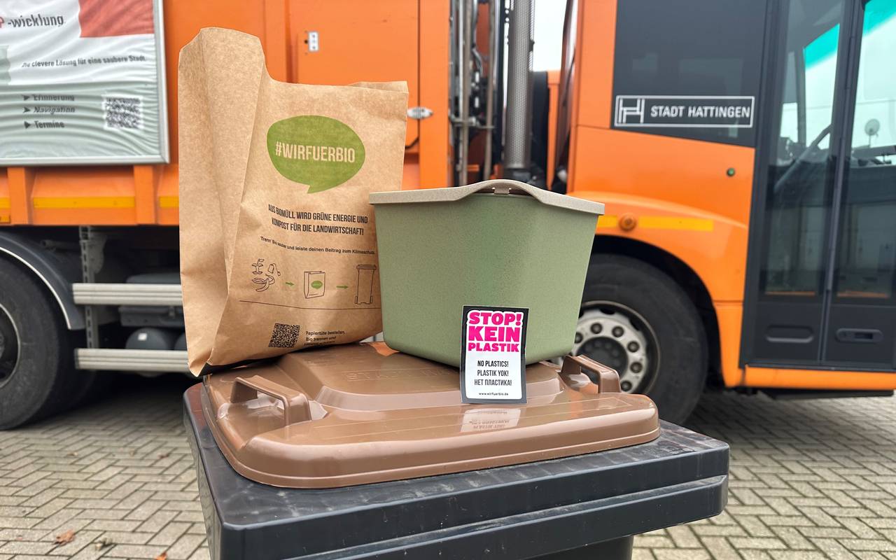 Bei der richtigen Entsorgung ist die Stadt Hattingen im Kreis das Schlusslicht. Das beklagt die Stadt, obwohl es die Biotonne schon seit 30 Jahren gibt. Jetzt will sie gegensteuern. Die Stadt weist auf die bundesweite Kampagne " Wir für Bio - gemeinsam gegen Plastik in der Biotonne" hin. Damit sollen die Menschen im Ennepe-Ruhr-Kreis für das Thema sensibilisiert werden. In Hattingen gibt es 3.000 Grundstücke ohne Biobehälter - das ist fast jeder dritte Haushalt. Am 3. Februar startet die Aktionswoche. Wer dann eine Biotonne beantragt, bekommt diverses Zubehör umsonst, wie z. B. einen Vorsortierbehälter.