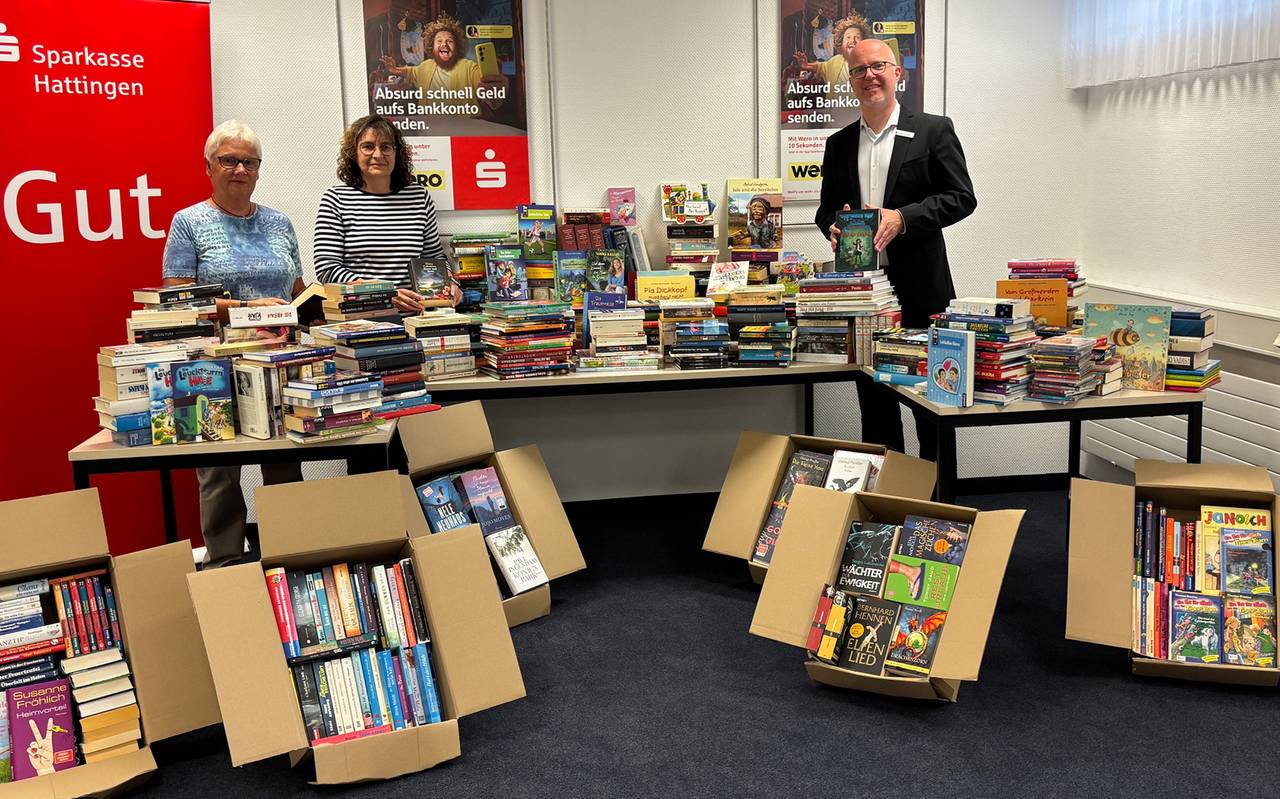 Die Sparkasse Hattingen hat in einer Aktion unter den Mitarbeiterinnen und Mitarbeitern über 500 Bücher für die Bücherstube Niederwenigern und die BürgerBücherei Welper gesammelt. Die Bücher – darunter viele Kinderbücher, Romane und Krimis – finden jetzt ihren Weg in die Ausleihe oder werden auf einem Bücherflohmarkt angeboten. Zusätzlich spendet die Sparkasse je 500 Euro an beide Büchereien. Damit will sie das Angebot verbessern und die Leseförderung stärken.