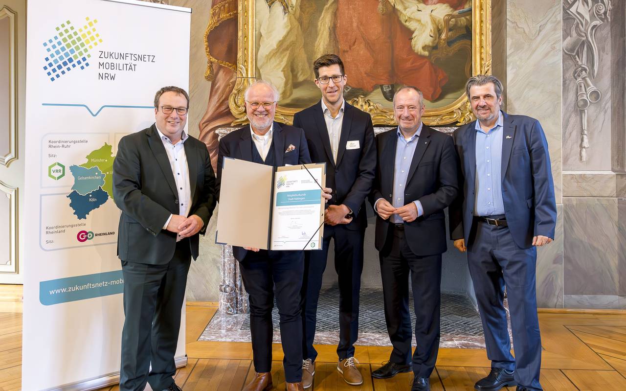 In Hattingen kann die Verkehrswende weiter und besser vorangetrieben werden. Wie die Stadtverwaltung mitteilt, ist sie jetzt Teil des Zukunftsnetzes Mobilität NRW - Eine Art Hilfe, um die Mobilität in Städten nachhaltiger zu gestalten. Um der Stadt Hattingen eine Urkunde für den Beitritt zu überreichen, kam NRW-Verkehrsminister Oliver Krischer vorbei. Das Zukunftsnetz Mobilität NRW berät und begleitet die Kommunen auf ihrem Weg, neue Mobilitätskonzepte zu erarbeiten, heißt es von der Stadtverwaltung. Kommunen können sich zusätzlich untereinander austauschen und voneinander lernen. Ziele sind demnach unter anderem sicherere Rad- und Fußwege, Carsharing und ein besserer ÖPNV in den Städten. Landesweit sind 336 Städte und Kommunen in dem Netzwerk.