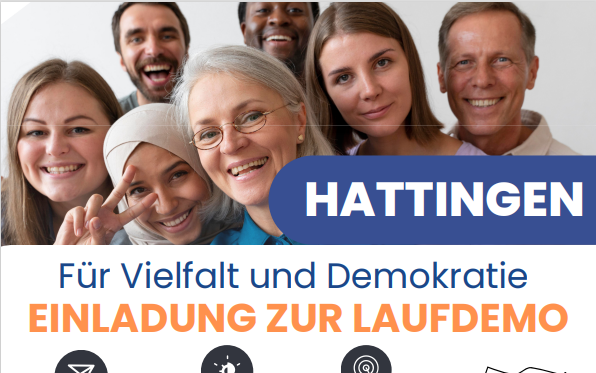 Für Vielfalt und Demokratie - In Hattingen organisiert das Bündnis neben den regelmäßigen Demonstrationen gegen die sogenannten Montagsmarschierer morgen eine weitere Veranstaltung. Dieses Mal ist es ein Demonstrationszug, der um 13:00 Uhr am Rathaus startet. Damit soll ein Zeichen gegen Diskriminierung, Rassismus und Ausgrenzung gesetzt werden. Das ehemalige Bündnis "Hattingen gegen Rechts" hatte sich kürzlich in "Hattingen für Vielfalt und Demokratie“ umbenannt.
