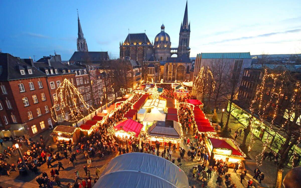 Aachener Altstadt - Mitten in der Aachener Altstadt, zwischen Aachener Dom und Rathaus, hat sich in den vergangenen 50 Jahren einer der angeblich schönsten Weihnachtsmärkte Europas entwickelt. Vom 22. November bis 23. Dezember bieten über 120 Händler, Handwerker, Künstler und Gastronomen Kerzen und Printen, festliche Musik und Handwerkliches aus den traditionellen Werkstätten.