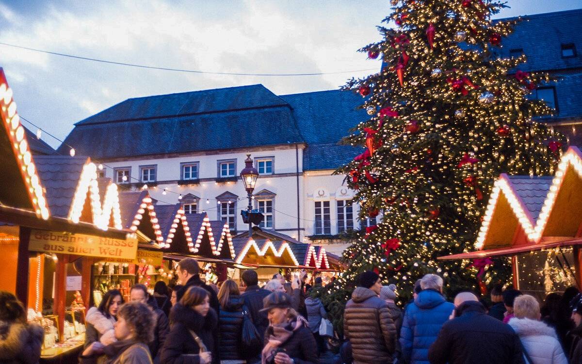 Monschau - Mitten in der Eifel ist die Chance außerdem hoch, den Weihnachtsmarkt in Monschau im Schnee zu erleben. Die Altstadt in Monschau hat mit ihren alten Fachwerkhäusern schon ohne Weihnachtsmarkt eine ganz tolle Atmosphäre. Mit all den Lichtern und Buden wird es aber noch mal eine ganze Schippe besser. Der Weihnachtsmarkt hat vom 29. November bis zum 22. Dezember nur an den Wochenenden geöffnet.