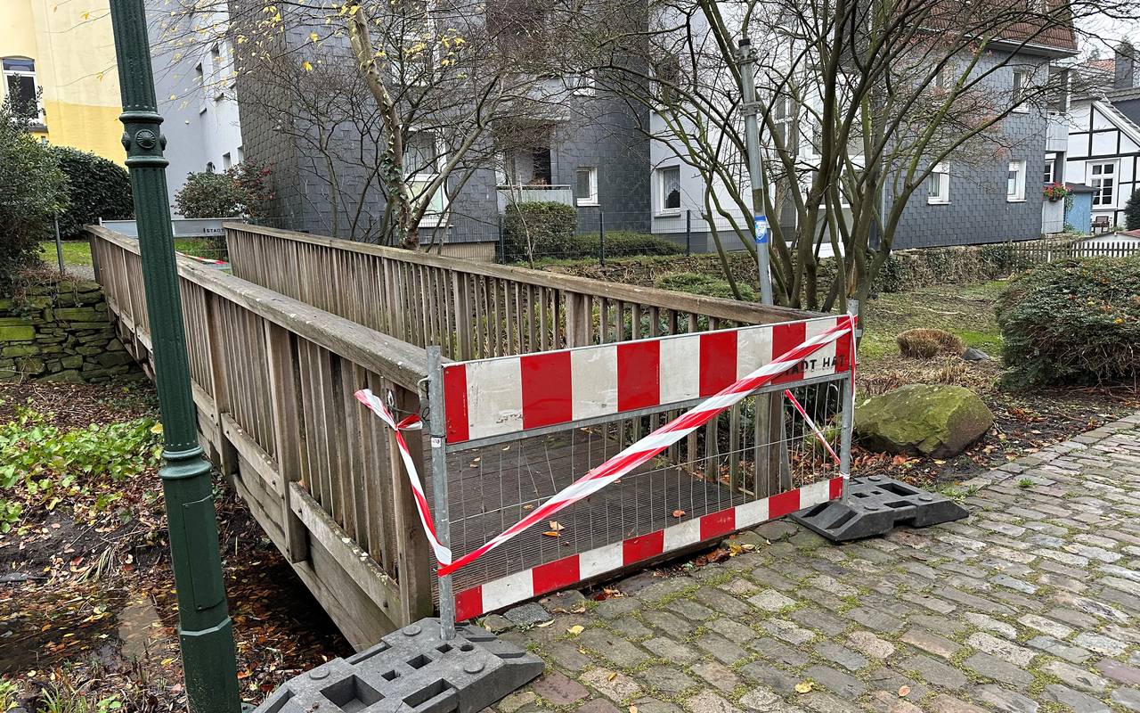 Holzbrücke im Feuchtbiotop Hattingen marode und gesperrt