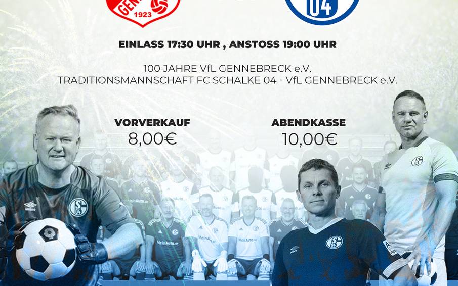 Ein hundertster Geburtstag ist immer ein Grund zu feiern. Das sieht auch der VfL Gennebreck so und feiert am kommenden Wochenende sein rundes Jubiläum. Das ist zwar schon zwei Monate her - aber gefeiert wird jetzt. Zum Auftakt des Partywochenendes steht direkt ein Highlight auf dem Programm. Die Alten Herren des VfL treten heute (02.06.) um 19:00 Uhr gegen die Traditionsmannschaft des FC Schalke 04 an. Das Vorspiel bestreiten die U 15-Mädchen des VfL Gennebeck und des TSV Herdecke. Am Samstag stehen noch Jugendspiele und eine Ü30-Party auf dem Programm. Der Sonntag steht ganz im Zeichen der Familien.