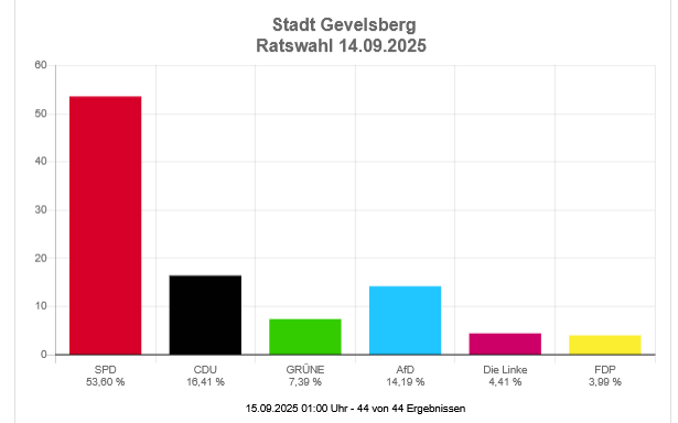 - Große Gewinne bei der Stadtratswahl in Gevelsberg hat die AfD eingefahren. Sie kommt auf 14,2 Prozent, bei der vergangenen Kommunalwahl waren es noch fünf Prozent. Auch landesweit hat die AfD deutlich dazugewonnen.
