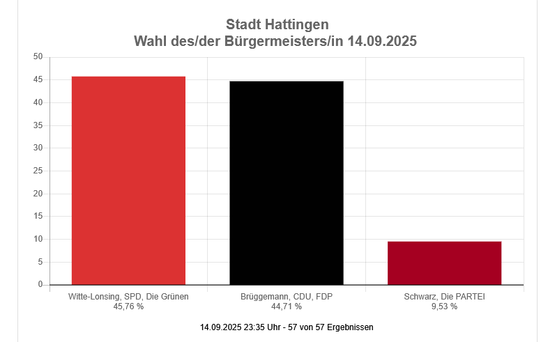 Hattingen hat gewählt: Witte-Lonsing & Brüggemann gehen in die Stichwahl. Alle Ergebnisse, Wahlbeteiligung & Analyse zur Kommunalwahl in Hattingen in der Übersicht.