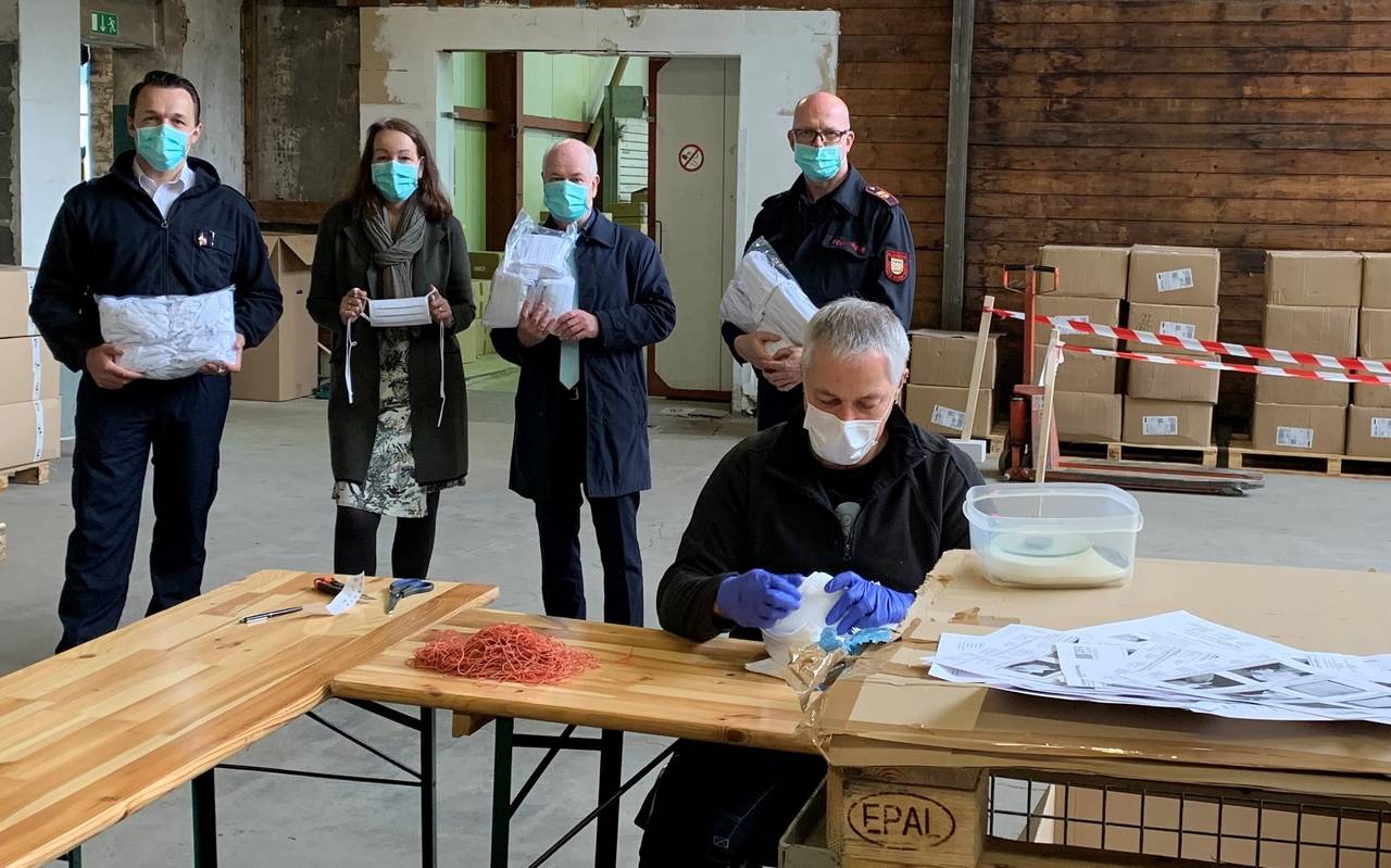 So gelangte das Angebot in den Ennepe-Ruhr-Kreis und somit auch mehr als 200.000 Einwegmasken. Außerdem beschaffte der Kreis 60.000 Mehrwegmasken, 3.000 Liter Desinfektionsmittel, 10.000 FFP2-Masken und 100.000 Einmalhandschuhe. Die Feuerwehren holen die Sachen ab und verteilen sie im Kreis.