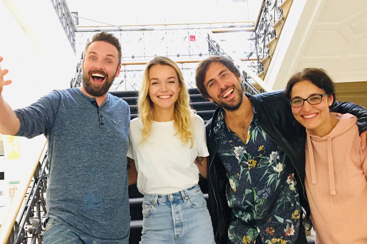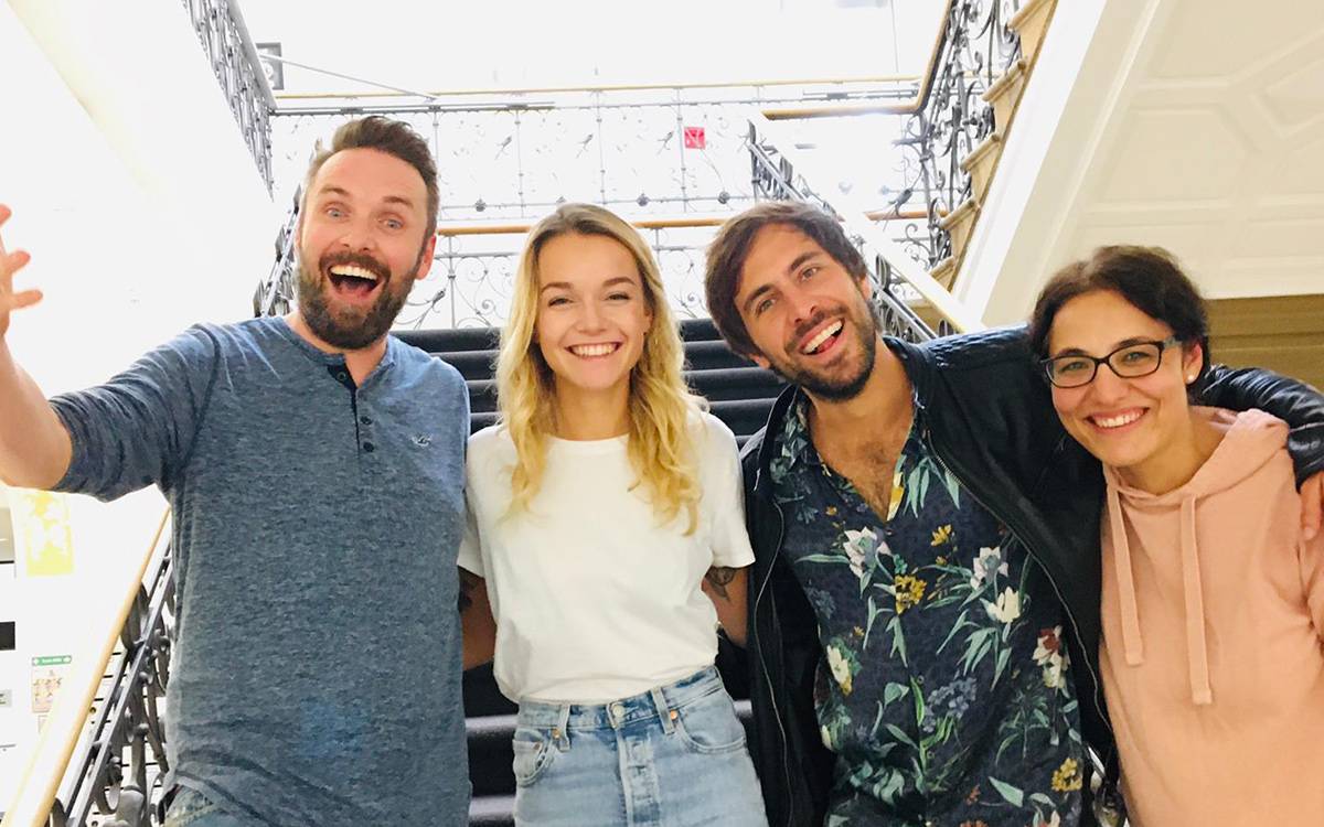 Kevin Zimmer, LOTTE, Max Giesinger und Katharina te Uhle (v.l.) haben sich zum Interview im Studio getroffen.