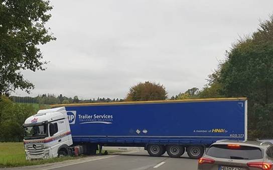 Gevelsberg: Auf der Wittener Straße geht gerade gar nichts. Ein LKW-Fahrer wollte dort gegen 10:30 Uhr wenden. Dabei hat er seine Maschine in den Graben gesetzt. Jetzt steht sein Auflieger quer auf der kompletten Fahrbahn - und zwar in Höhe "Im Kalthöferholz" (zwischen Eichholz- und Asbecker Straße). Aktuell laufen die Bergungsarbeiten. Die Polizei empfiehlt, den Bereich großräumig zu umfahren. Die Straße soll gegen 12.00 Uhr wieder frei sein.