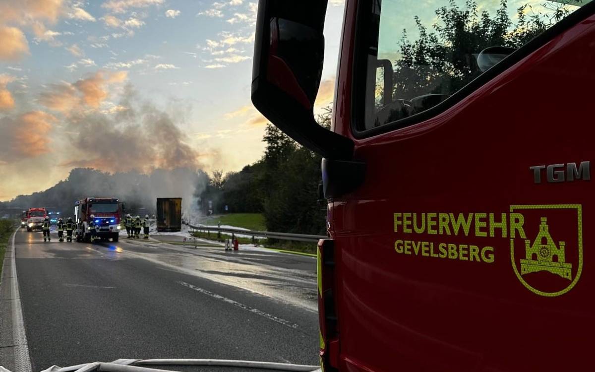 Ein LKW-Brand auf der A43 bei Sprockhövel Höhe Rastplatz Scherenberg hat die Feuerwehren aus dem Kreis am Abend lange beschäftigt. Der Sattelschlepper war mit Möbeln beladen und fing Feuer. Das war gegen 18 Uhr abends. Der Fahrer konnte sich rechtzeitig retten, der LKW brannte komplett aus. Die Autobahn wurde komplett gesperrt in Richtung Wuppertal. Die Ladung des LKW entzündete sich immer wieder neu. Bis alle Glutnester gelöscht waren, dauerte es mehrere Stunden. Die Feuerwehr Sprockhövel war vor Ort, außerdem mehrere Löschzüge der Feuerwehren aus Gevelsberg und Schwelm und ein Radlader der Feuerwehr Ennepetal. Dann wurde der LKW abgeschleppt und die Straße gereinigt. Erst heute früh um halb 4 wurde die Strecke wieder freigegeben. Die Brandursache ist noch nicht klar. Erster Einschätzung weist auf einen technischen Defekt hin.