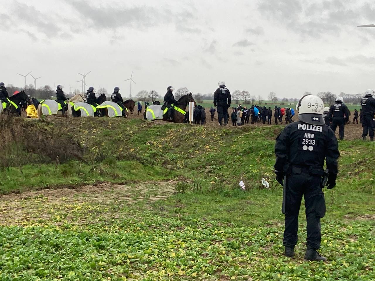 Von den laut Polizei rund 15 000 Angereisten hätten sich rund 5000 nicht an der Versammlung beteiligt. Sie hätten sich sofort Richtung Abbaukante und Lützerath bewegt und seien daher als "Störer" betrachtet worden. Rund 1000 von ihnen, größtenteils vermummt, hätten erheblichen Druck auf Polizeiketten an der Tagebaukante und am Rande von Lützerath ausgeübt, sagte der Sprecher weiter. "Infolgedessen kam es zum Einsatz von Einsatzmehrzweckstöcken und Pfefferspray." Auch Wasserwerfer seien genutzt worden, um Personen vor dem Eindringen nach Lützerath abzuhalten.
