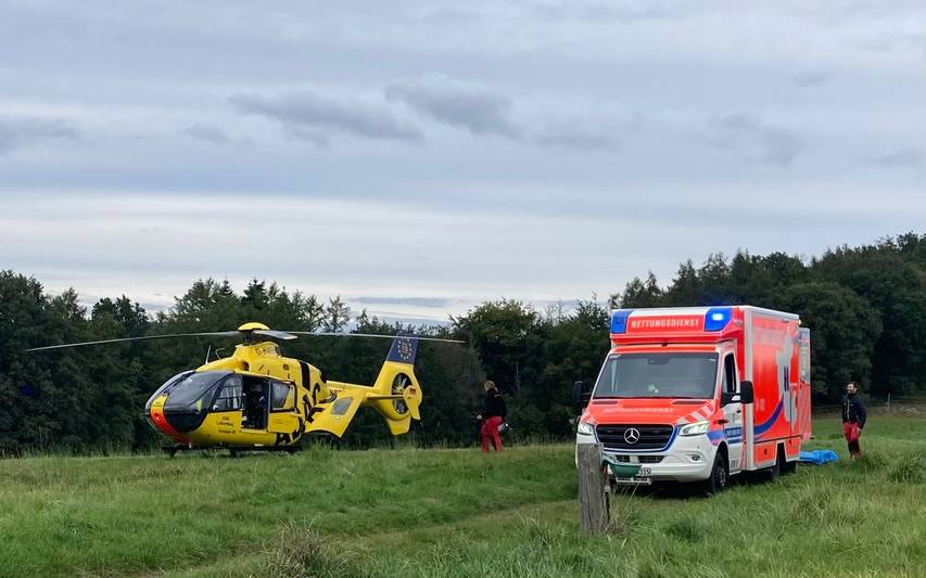 Ein Motorradfahrer hat sich auf der Felderbachstraße in Hattingen in Höhe der Einmündung zum Höhenweg bei einem Unfall so schwer verletzt, dass er mit einem Rettungshubschrauber in ein Krankenhaus nach Bochum geflogen wurde. Gestern Nachmittag (29.09.) stieß der Motorradfahrer mit einem Auto zusammen und stürzte. Die zuerst eingetroffenen Rettungskräfte riefen den Hubschrauber hinzu, eine weitere Person wurde in einem Rettungswagen behandelt. Nach einer Stunde war der Einsatz beendet.